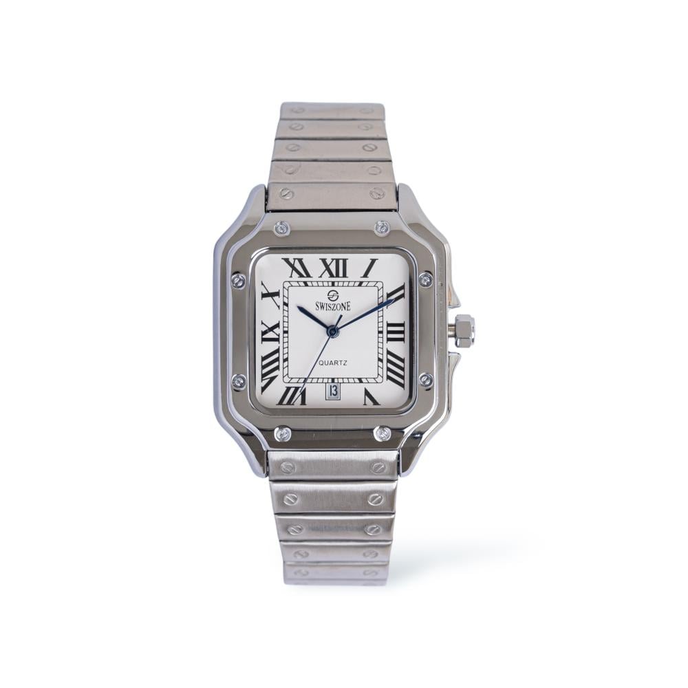 ساعة رجالية باللون الفضي-مينا ابيض