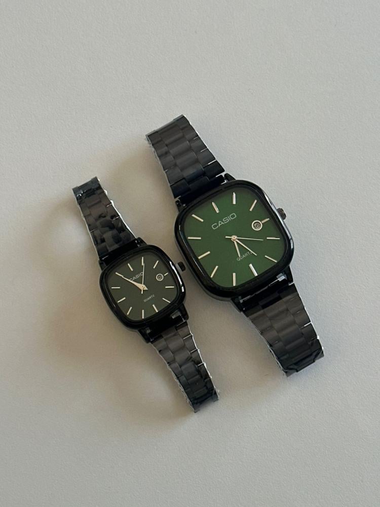 ساعة كاسيو رجالي و نسائي - اسود ميناء اخضر